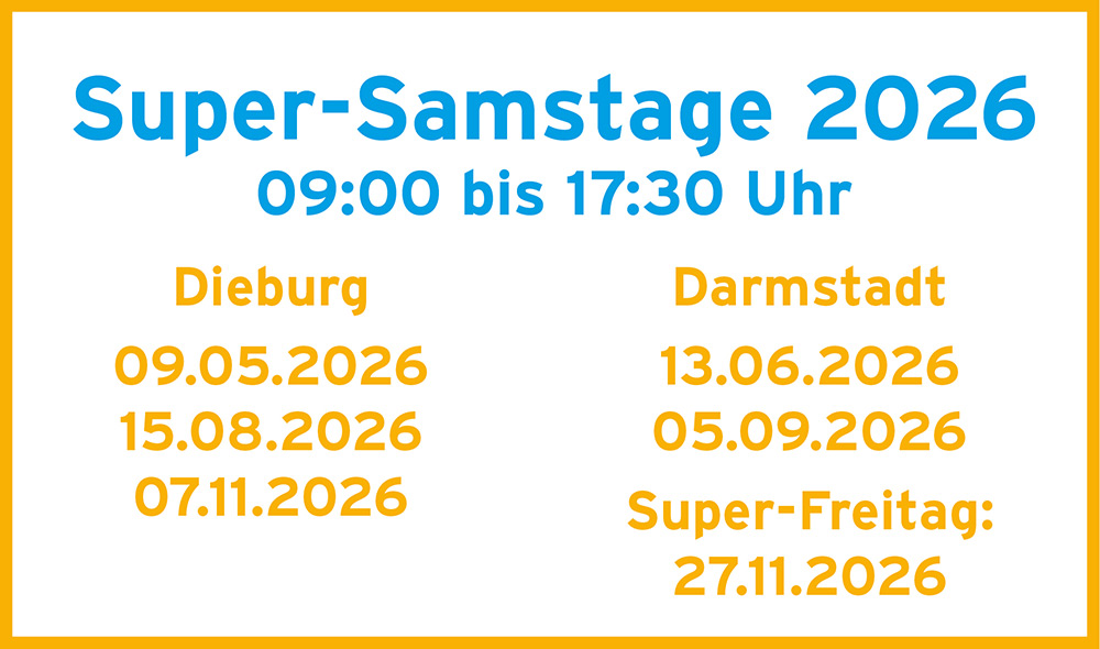 An den Super-Samstagen finden Aktionen, Vorträge und Mitmachangebote zu bestimmten Themen statt. Sobald Details feststehen, finden Sie das jeweilige Programm auf dieser Seite.